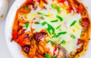 Cilantro lime Thai Hom Mali Jasmine rice, seasoned chicken breast, refried beans, white onion, Mexican cheese, salsa verde, cilantro